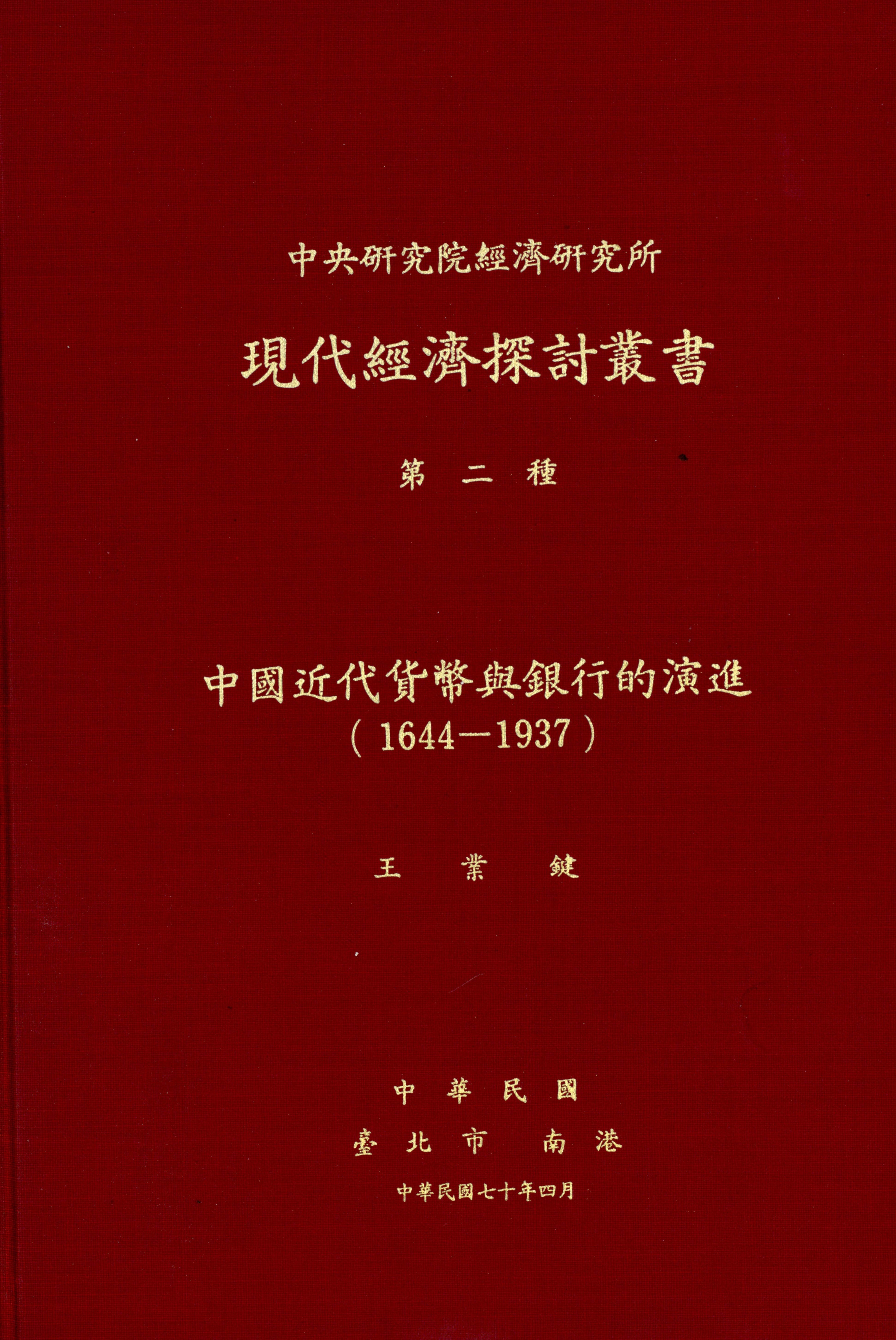 中國近代貨幣與銀行的演進 (1644-1937)