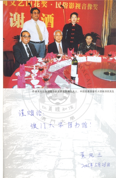本館通過徵集、購買、捐贈、主動聯系著作等方式,經過多年的累積與整理,建立鄰近地區最具特色的作者簽名文庫,直到2026年,本文庫共收入親筆簽名圖書超過6,000種,包括著名中國學者張岱年、費孝通、錢偉長等及西方學者C. R. Boxer, Joseph Needham等,著名作家有白先勇、余光中、金庸、莫言等,以及由中華文學基金會送贈的中國當代作家簽名叢書200冊,如巴金、冰心等,藉作者簽名連繫讀者、圖書館及作者之間的橋樑。