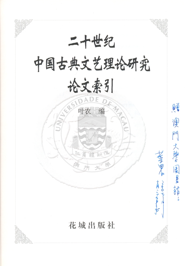 二十世紀中國古典文藝理論研究論文索引