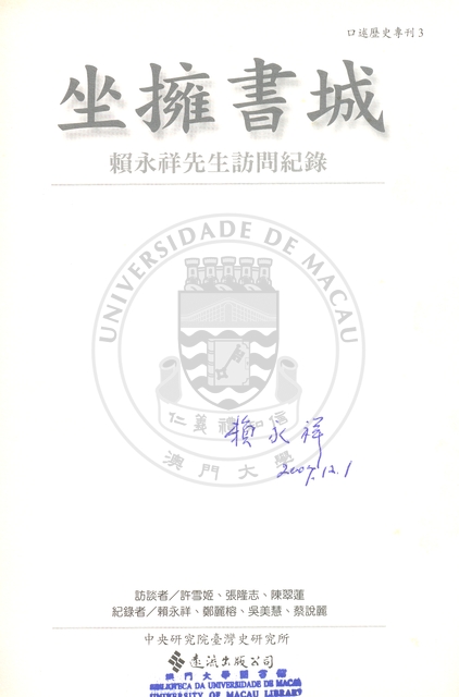 坐擁書城 : 賴永祥先生訪問紀錄