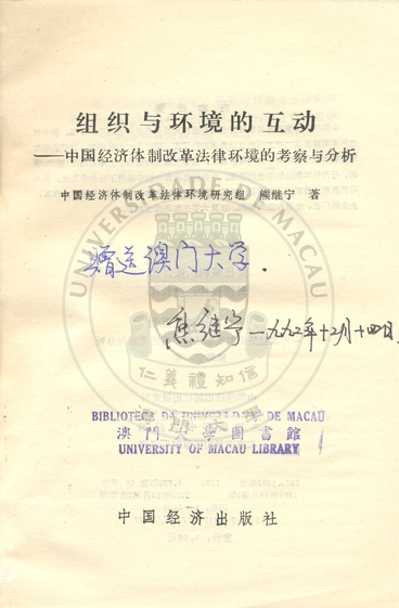 • 組織與環境的互動 : 中國經濟體制改革法律環境的考察與分析