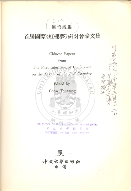 首屆國際 "紅樓夢" 研討會論文集 = Chinese papers from the First International Conference on the Dream of the Red Chamber