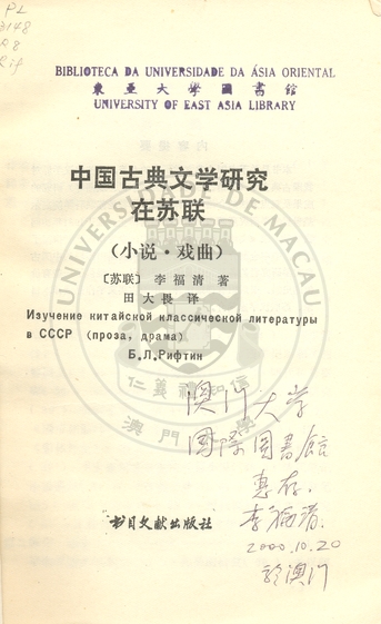 • 中國古典文學研究在蘇聯