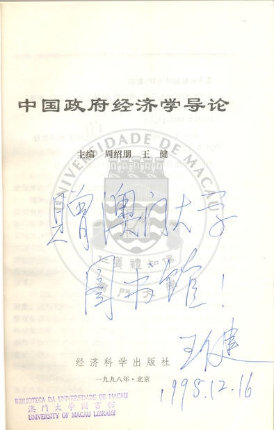 • 中國政府經濟學導論